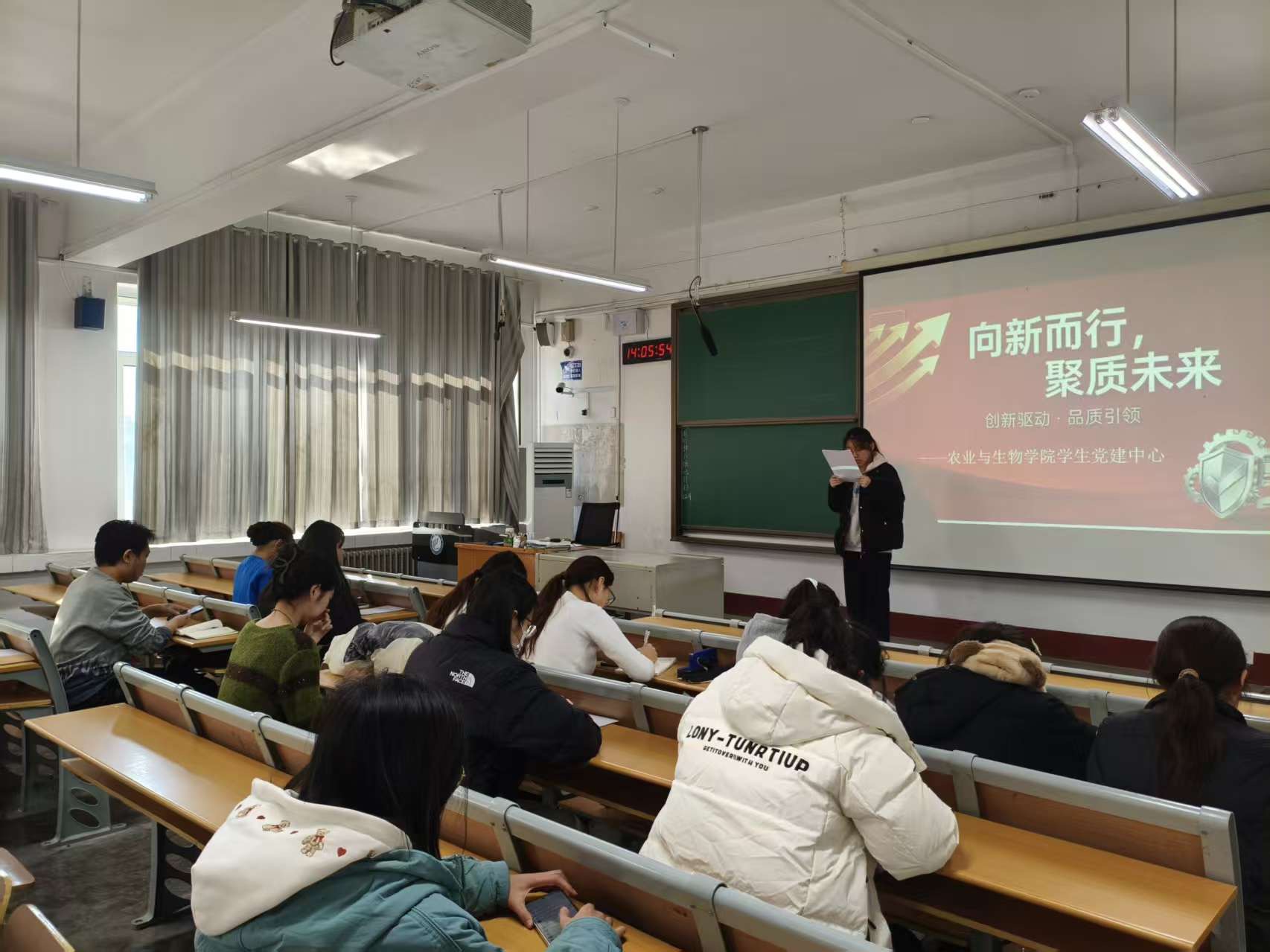 为引导青年学子深刻把握新质生产力的核心内涵与时代要求,自觉将个人专业成长融入国家现代化建设大局,12月4日,农业与生物学院学生党建中心于2号教学楼518成功举办“向‘新’而行,聚‘质’未来”主题读书会。