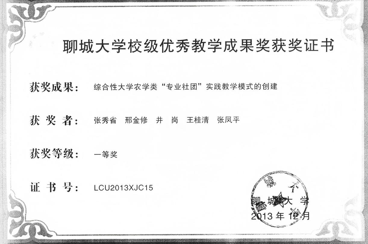 教学成果:校级 一等奖-综合性大学农学类“专业社团”实践教学模式的创建