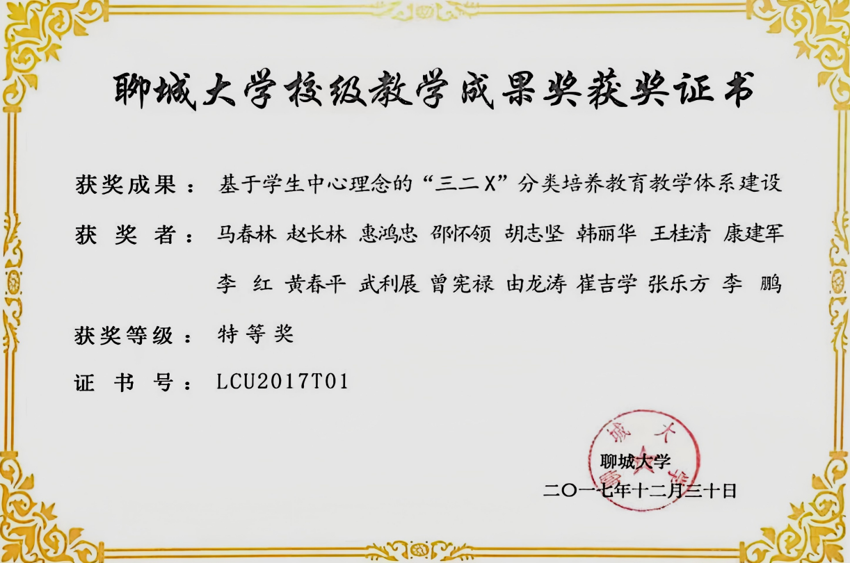 教学成果:校级 特等奖-基于学生中心理念的“三二X”分类培养教育教学体系建设