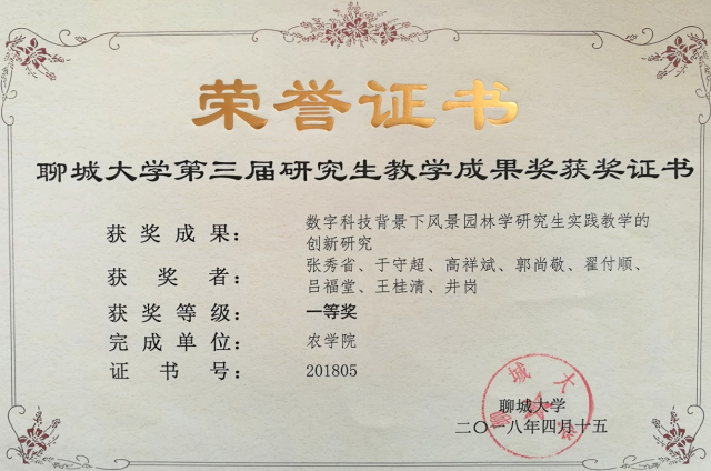 教学成果:校级 一等奖-数字科技背景下风景园林学研究生实践教学的创新研究