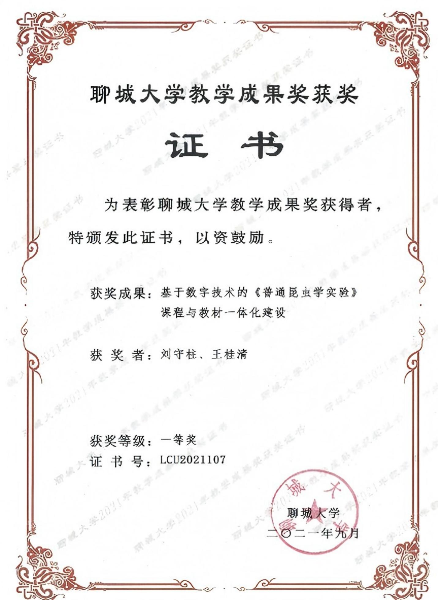 教学成果:校级 一等奖-基于数字技术的《普通昆虫学实验》课程与教材一体化建设