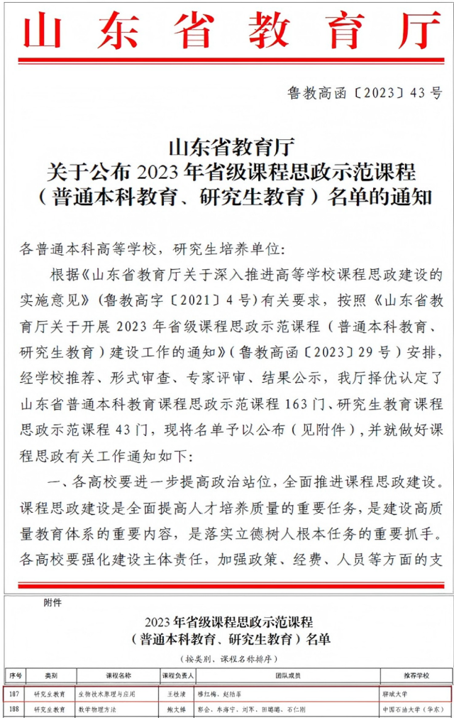 一流课程:省级-“生物技术原理与应用”省级课程思政示范课程