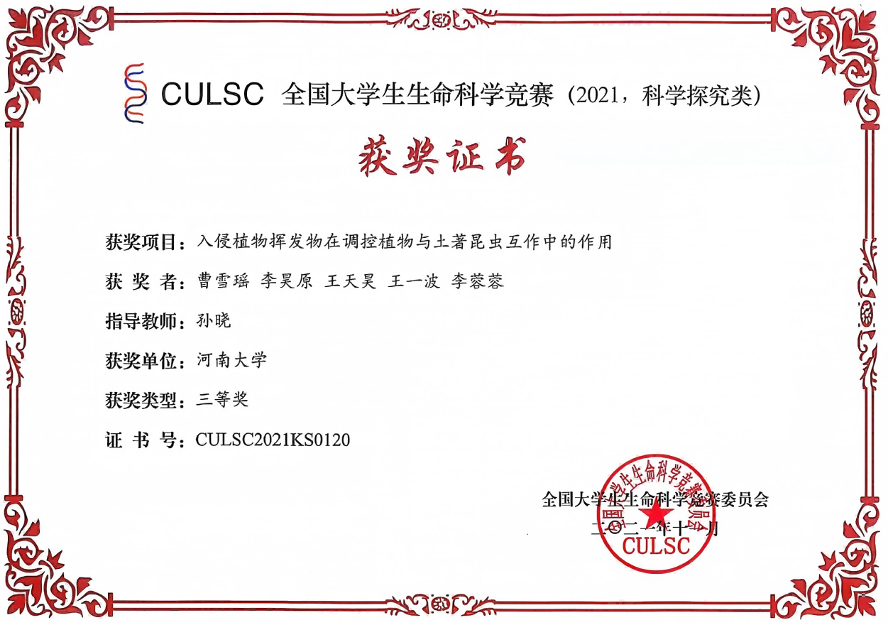 获奖证书