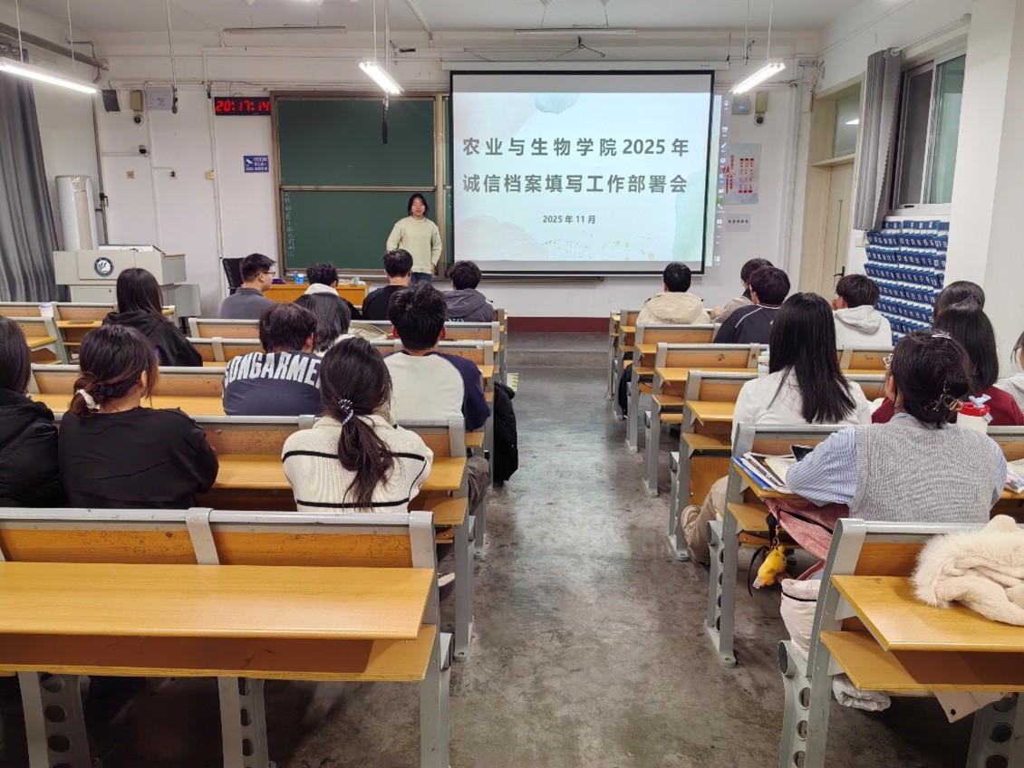 为引导学生牢固树立诚信意识,夯实资助工作诚信基石,11月3日,农业与生物学院召开诚信档案建档工作部署会,组织全院学生完善个人诚信档案和电子档案。学院资助辅导员刘毅和各班级学生资助工作负责人参会。