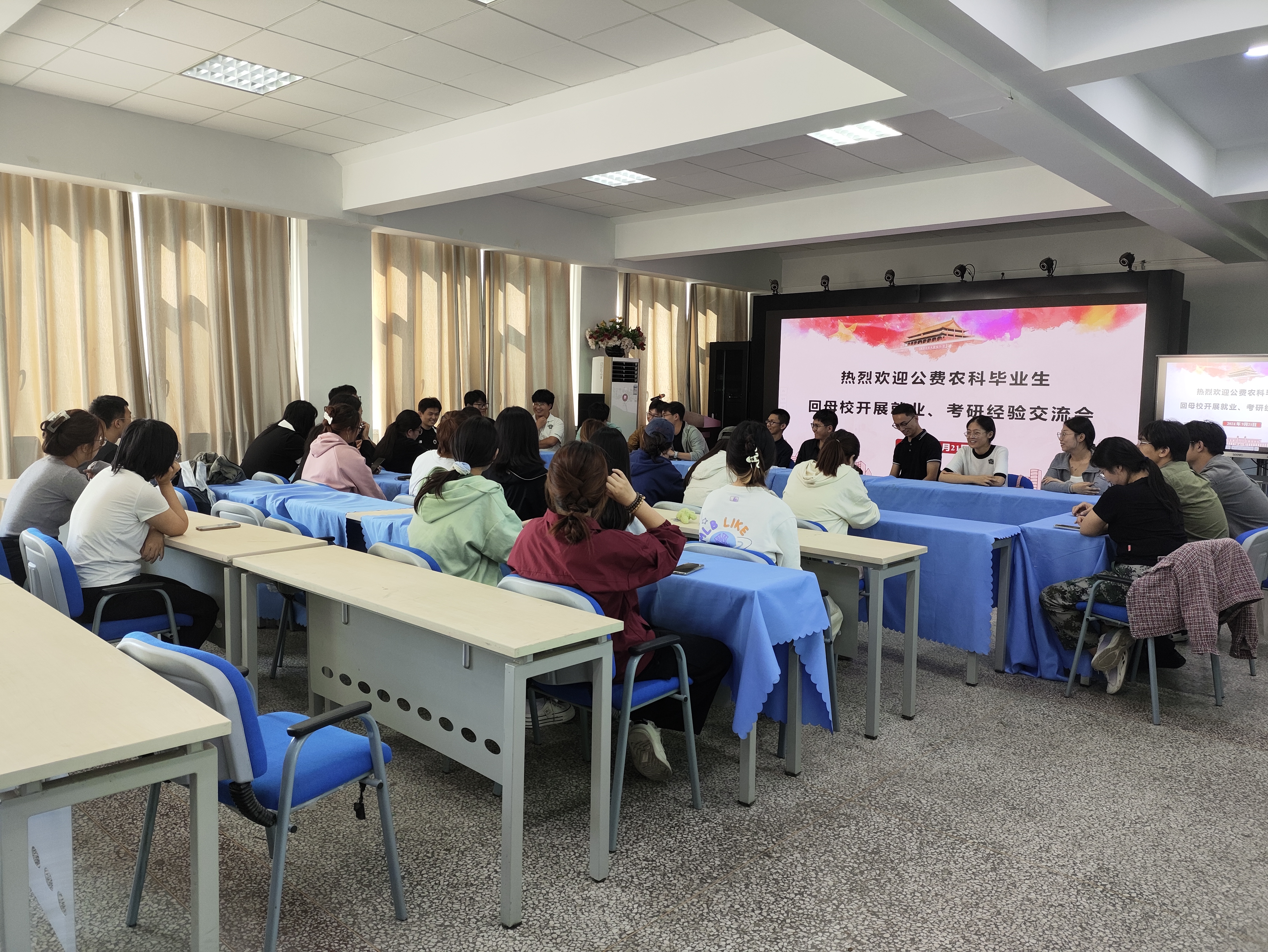 浓浓母校情,悠悠学子心。9月21日,农业与生物学院于3号楼虚拟仿真实验室邀请公费农科生新老生开展就业、考研经验交流会,宋勇老师主持本次会议。
